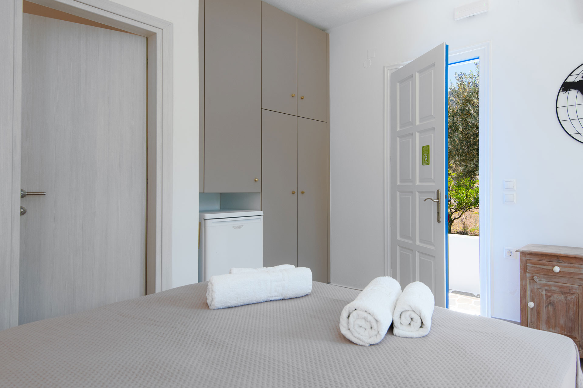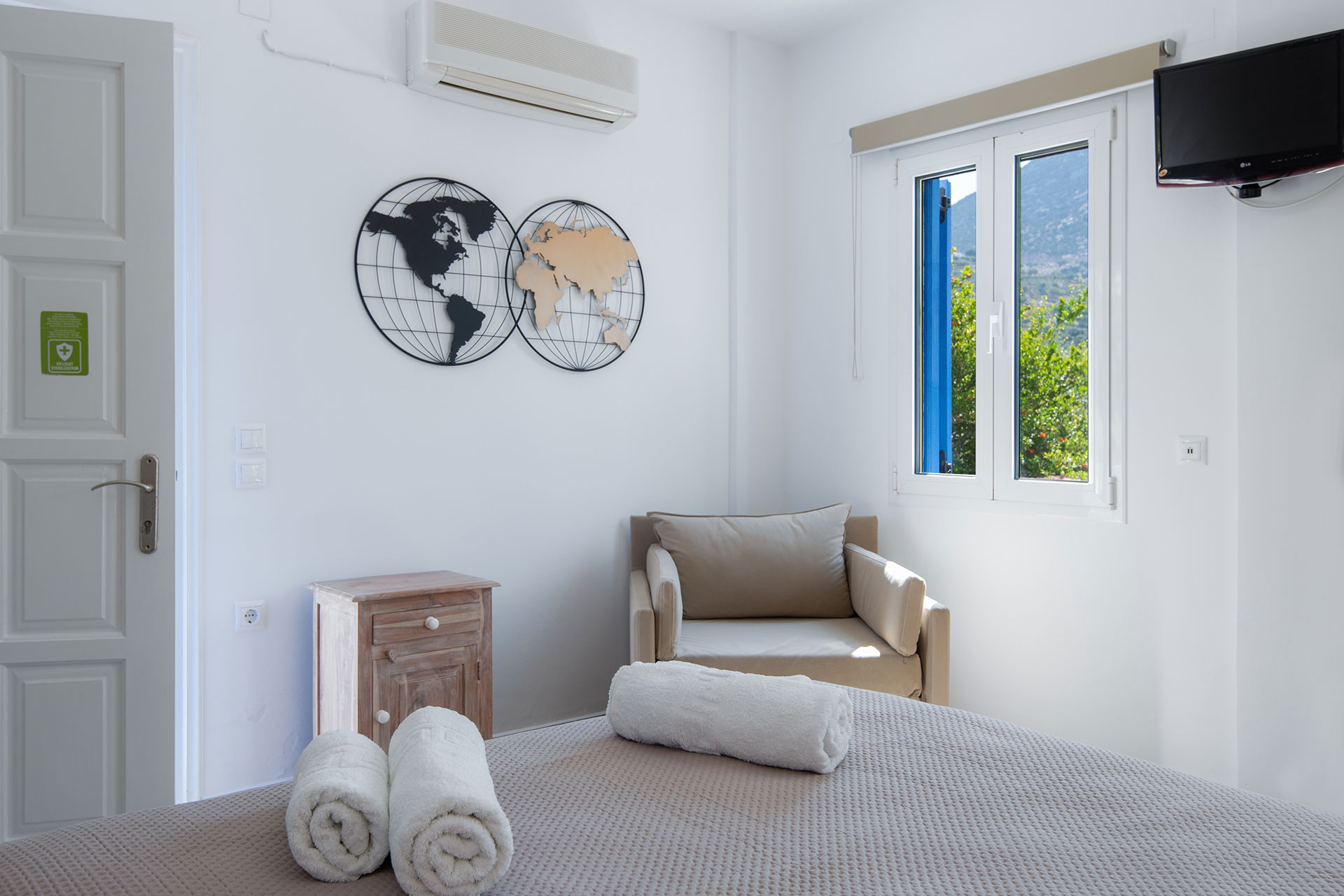 La chambre n° 3 est située au rez-de-chaussée, elle dispose d'un lit double et d'un fauteuil-lit et possède une terrasse avec vue sur notre jardin.